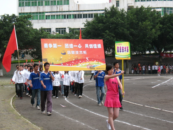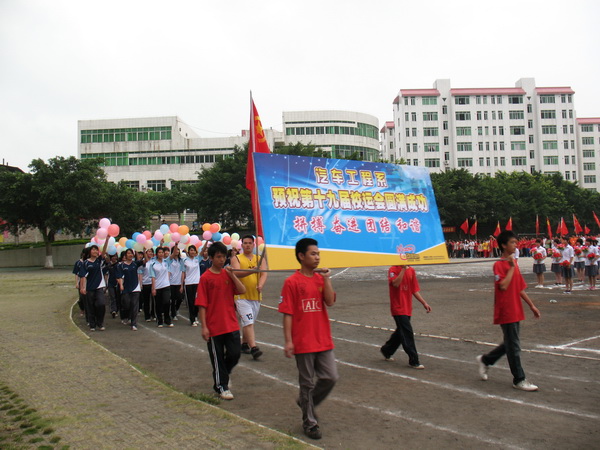 清风送爽,艳阳高照,为庆祝2008北京奥运会圆满结束,同时也为庆祝祖国即将到来的60周年华诞, 5 月 16 日 ,我校第十九届田径运动会在学校与动场隆重举行。在全体运动员.裁判员、工作人员与全校师生的共同努力下,一场“文明,热烈,精彩,圆满” 的体育盛会圆满落下序幕。开幕式上,陈桐副校长作了热情洋溢的致辞。于锦杰校长宣布本届校运会开幕。