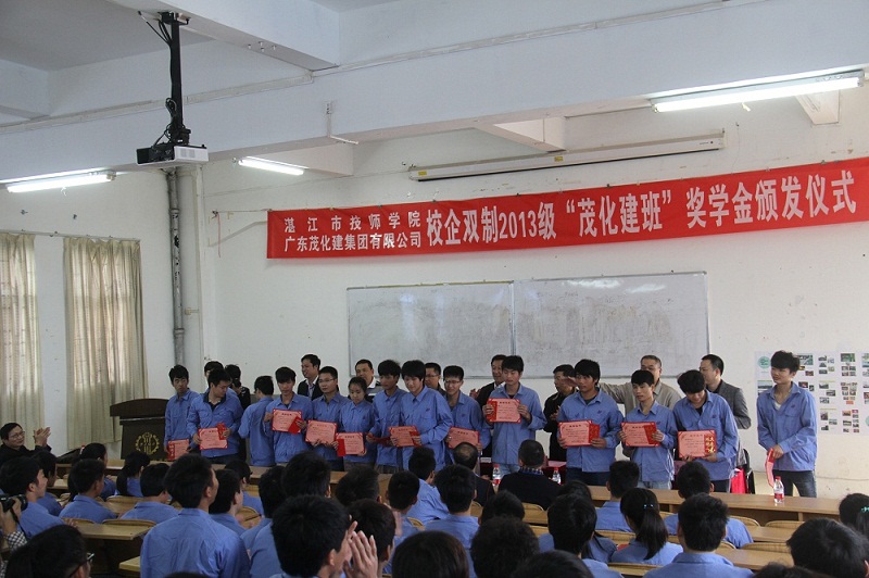 。我校是广东最早实施校企双制办学的学校之一,积累了丰富的经验。从2013年开始,我院和广东茂化建集团有限公司进行校企双制合作,开设机械维修、电气自动化、化工仪表等三个专业,学生毕业后全部安排到广东茂化建集团有限公司工作。他希望 “茂化建班”的同学们牢记“技于人,工于物”的校训,充分发挥“苦干、敢干、实干”的水手精神,认真接受学院和公司的共同培养和教育,努力将自己塑造成为知识渊博、技能精湛、素质全面的高技能人才,早日成为公司的合格员工,勇挑重担,不负重托,在各自的工作岗位上创造新的业绩,为公司的发展贡献自己的青春和活力。