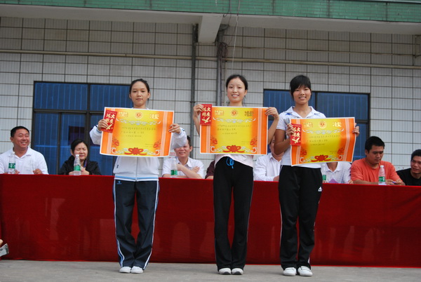 主席台上5名体育老师紧张地工作着,操场上的比赛在紧凑而有序地进行。赛场上不时出现令人振奋、赏心悦目的画面。整齐的队列,统一的服装,认真、有力的体操动作,烘托出热烈的赛场气氛,经过一个多小时的激烈角逐,本次广播操比赛产生了前六名:80烹饪班和08人力资源班以93分的高分夺冠,08物流(1)班以90分的成绩获得第二等奖。08文秘、08广告班和08高级物流班荣获第三等奖。最后,由黄继乐书记宣布了比赛的结果,系领导当场为获奖班级颁发了奖状和奖金。