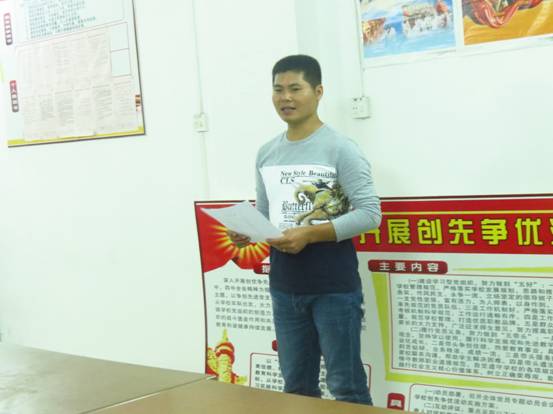 光阴似箭,日月如梭。转眼间,一年的时间已匆匆流逝。不知不觉中,我系再次迎来了15届新生的主题演讲比赛。为了给同学们提供一个展现自我,提升自我的舞台,锻炼同学们的演讲能力和口头表达能力,促进同学们的综合能力全面发展,更为了增强同学们的竞争意识和荣誉感,我系于2015年11月11日在2号实训楼401会议室展开了“学习改变命运”的主题演讲比赛活动。出席本次活动的评委嘉宾分别是李壮书记以及数控技术系团委学生会主席团。
