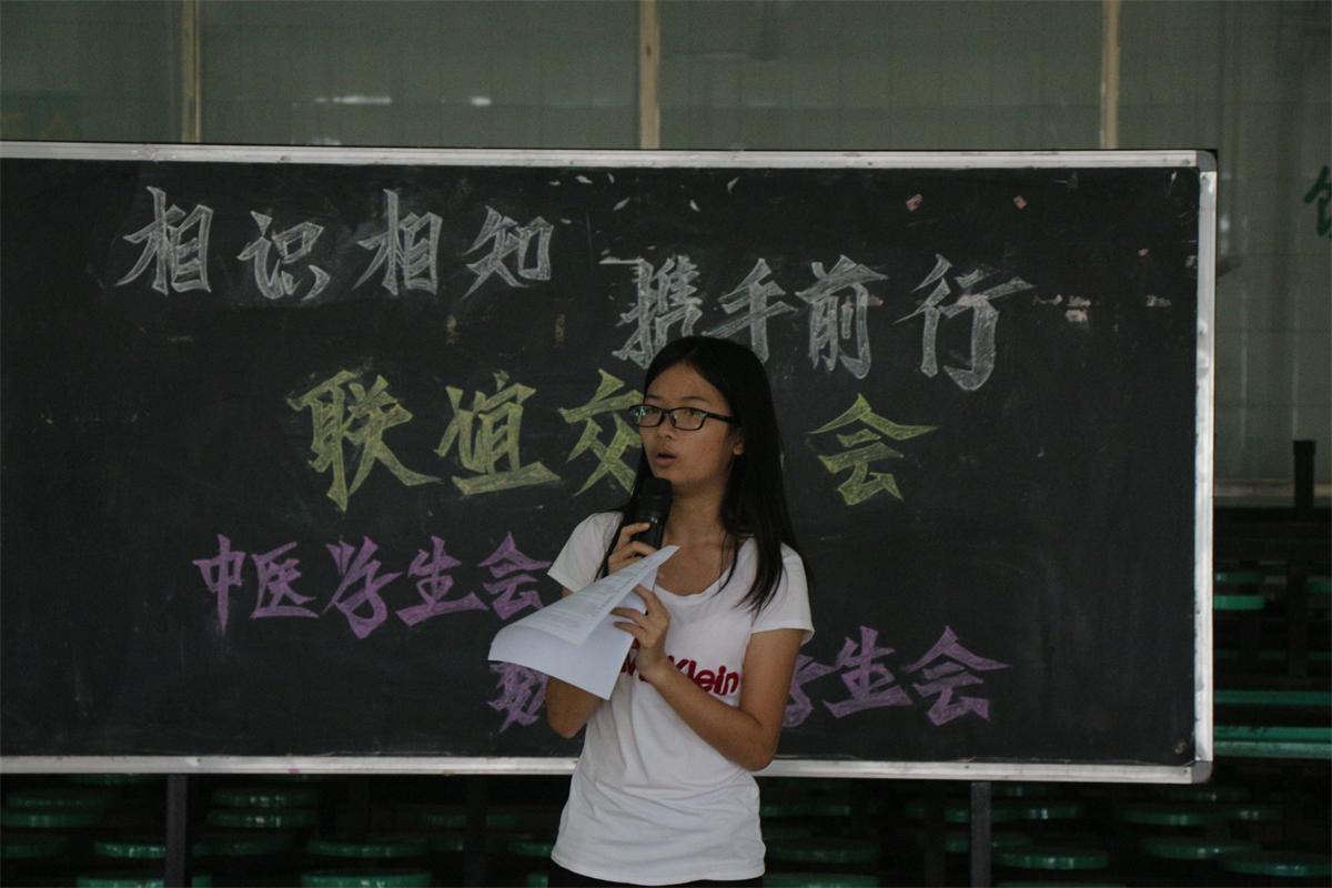 活动开始,首先由我系团委副书记、学生会主席谢立铮同学代表人上台发言,谢立铮介绍了我系团委学生会的部门设置和工作方式等,之后由中医学校代表黄小殷同学介绍中医学生会的情况及管理方式等,通过座谈交流各自工作经验,互相学习。在这期间双方的团干部积极发言,共同交流了自身的工作经经验。