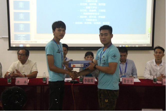 接下来,由数控技术系李壮书记宣读新一届干部名单,并请各社团的新旧社长上台交接会印和重要文件,他们的脸上都洋溢着笑容,神采奕奕,仿佛在跟我们说:我们一定会将社团发展得更好的。