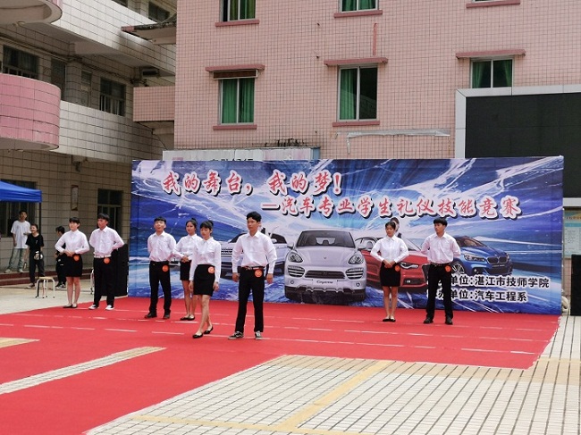 为弘扬中华文明礼仪,展现新时代青年学生职业风采,5月25日上午,汽车工程系汽车专业学生礼仪技能竞赛在学院1号理论楼前面广场激情上演。