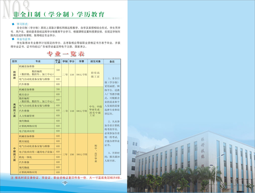 附:2012年职业技能培训、非全日制招生简章