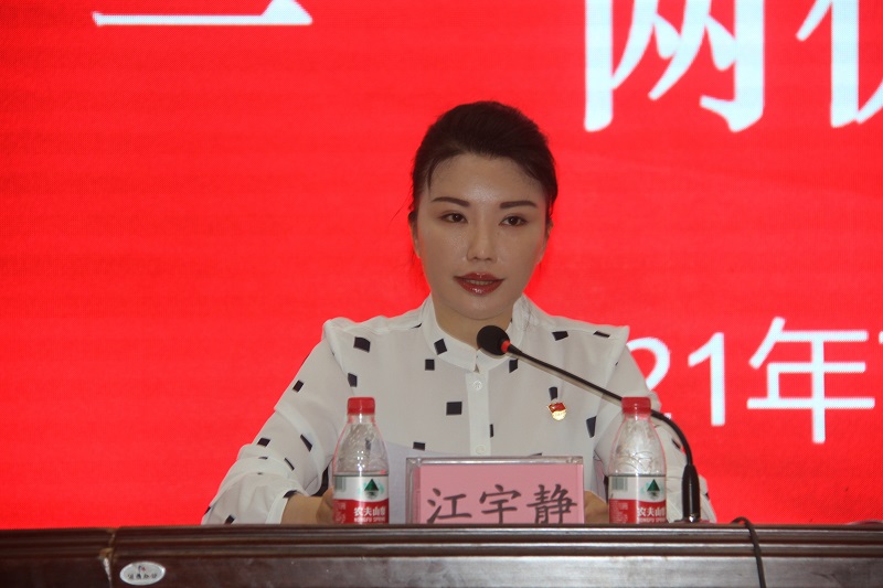 学校党委书记、校长江宇静作总结讲话。首先向受到表彰的先进集体和优秀个人表示热烈的祝贺。她指出,过去一百年,中国共产党向人民、向历史交出了一份优异的答卷。现在,中国共产党团结带领中国人民又踏上了实现第二个百年奋斗目标新的赶考之路。中国共产党立志于中华民族千秋伟业,百年恰是风华正茂。回首过去,展望未来,有中国共产党的坚强领导,有全国各族人民的紧密团结,全面建成社会主义现代化强国的目标一定能够实现,中华民族伟大复兴的中国梦一定能够实现。